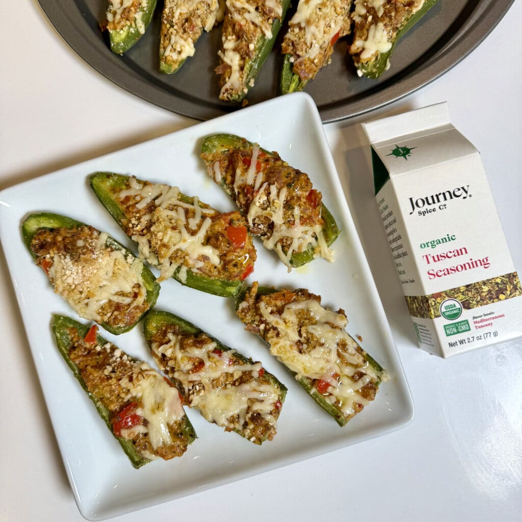 You will love these Tuscan Stuffed Jalapenos if you like it spicy. These Tuscan Stuffed Jalapenos are a perfectly delicious mix of Tuscan and spicy flavors to spice up snack time.